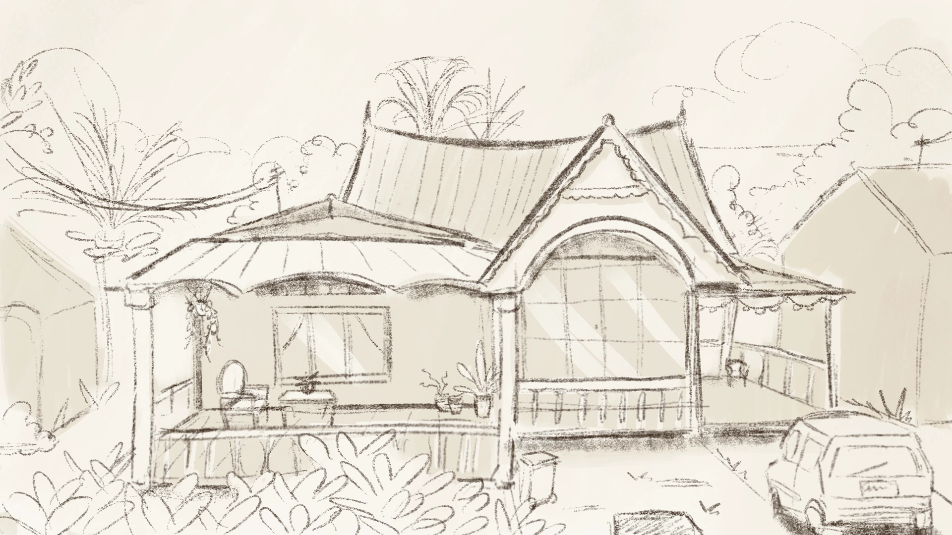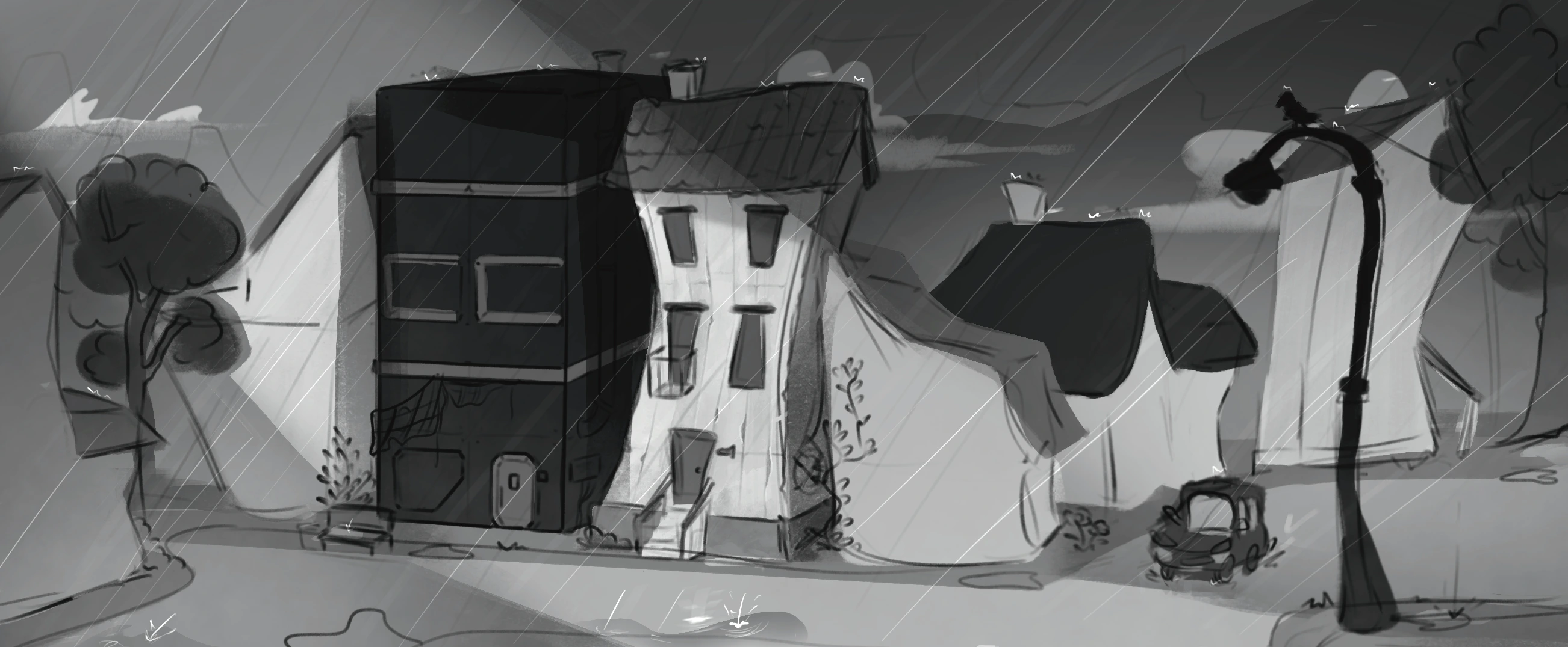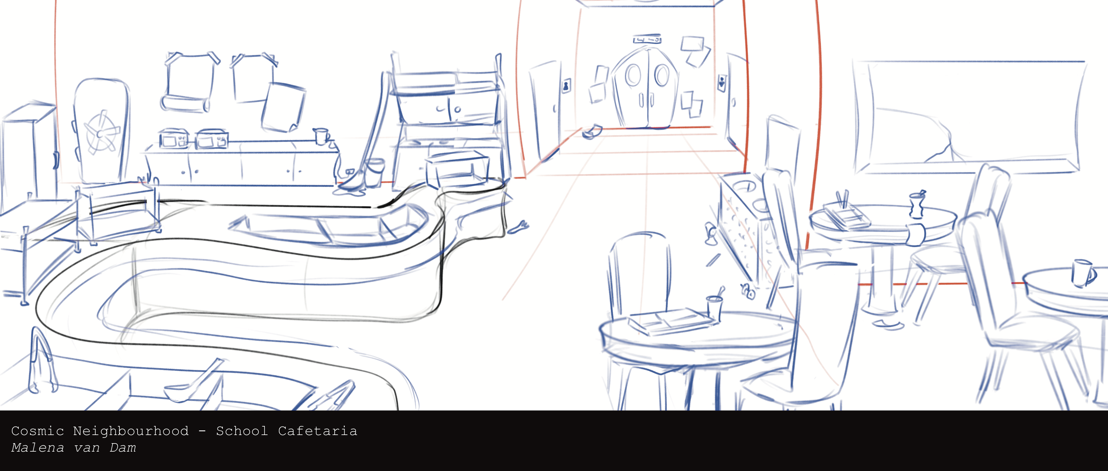Rojak is the newest project I’m working on. It’s currently still in production and will be a short 2D-animated film. I’m in charge of the backgrounds and the layouts. It’s set in modern Malaysia; accuracy is a very important part of the storytelling. People who live, have lived or went to Malaysia need to recognise the setting. I did a lot of research beforehand. The animation will be mixed media. In order to blend the two techniques, I went with a textured and sketchy style.