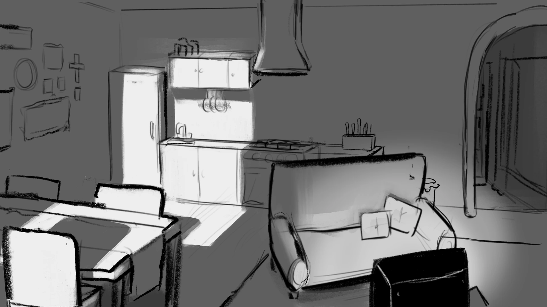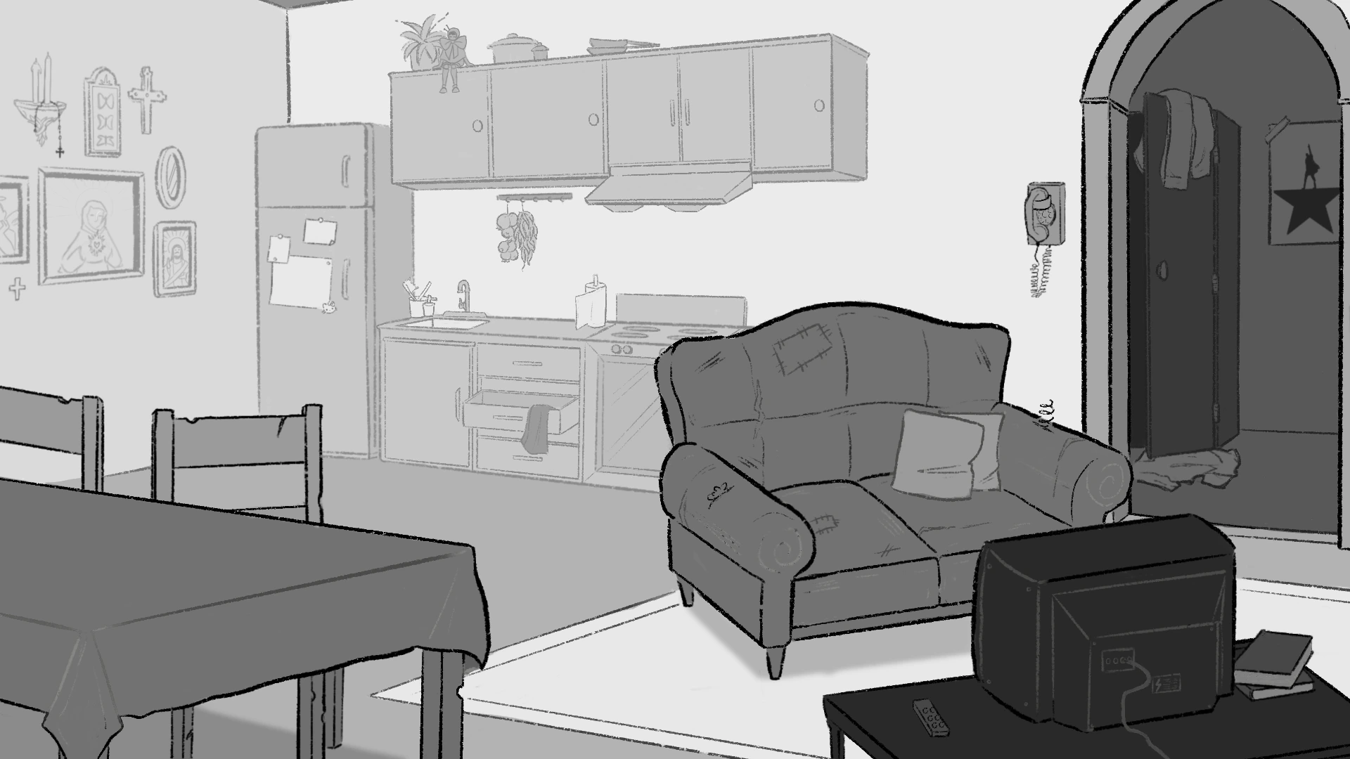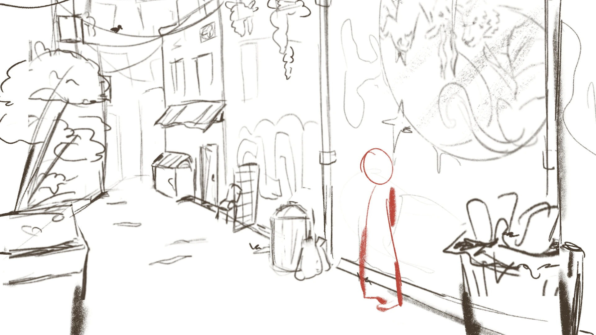 Rojak is the newest project I’m working on. It’s currently still in production and will be a short 2D-animated film. I’m in charge of the backgrounds and the layouts. It’s set in modern Malaysia; accuracy is a very important part of the storytelling. People who live, have lived or went to Malaysia need to recognise the setting. I did a lot of research beforehand. The animation will be mixed media. In order to blend the two techniques, I went with a textured and sketchy style.